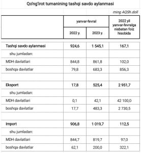Qo’ng’irot tumani tashqi savdo aylanmasi