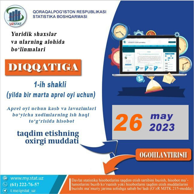 Qońırat rayonı Statistika bólimi 👉https://t.me/qongiratrkuz